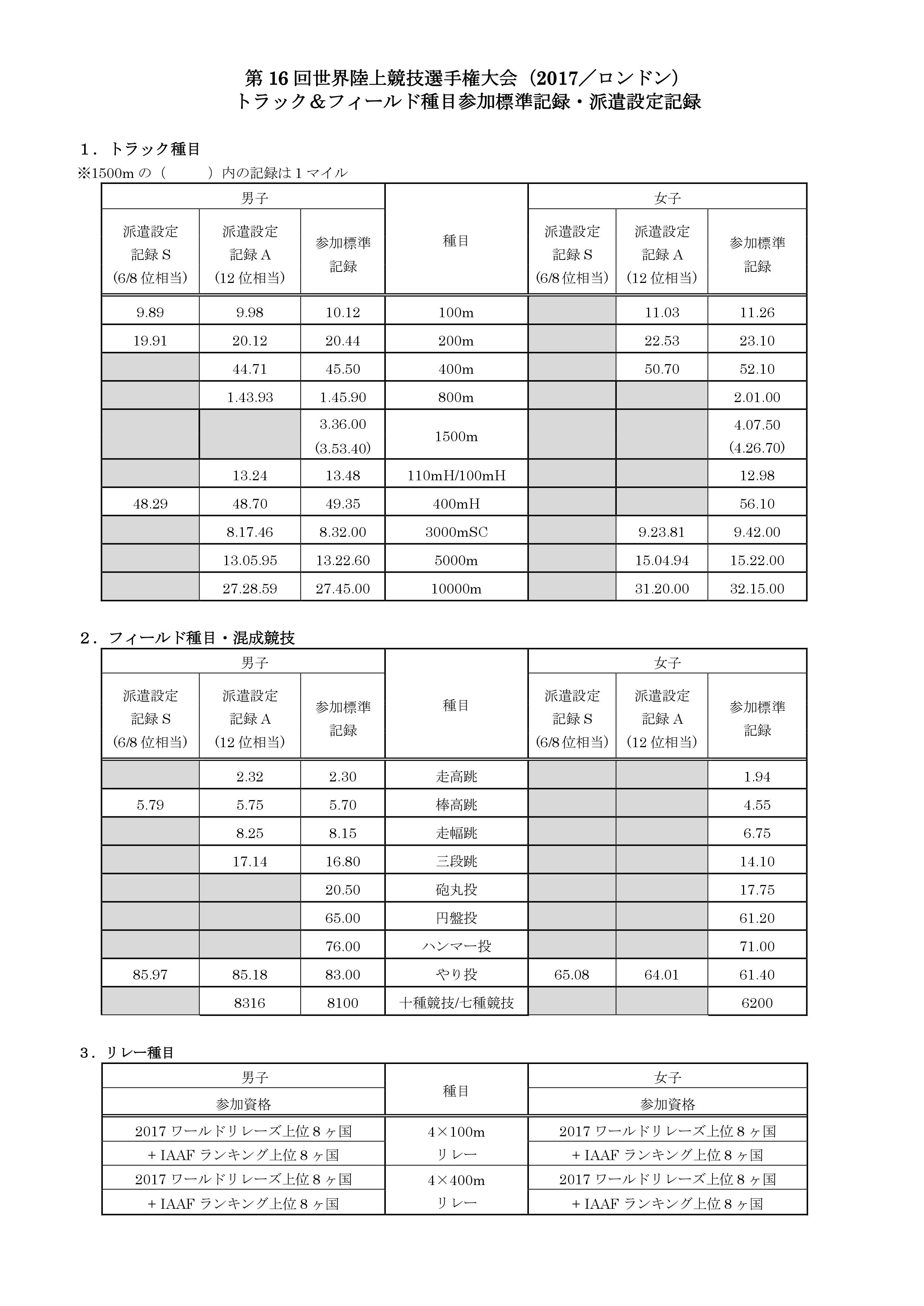 世界選手権への道 参加標準 派遣設定記録突破者一覧 日本陸上競技連盟公式サイト